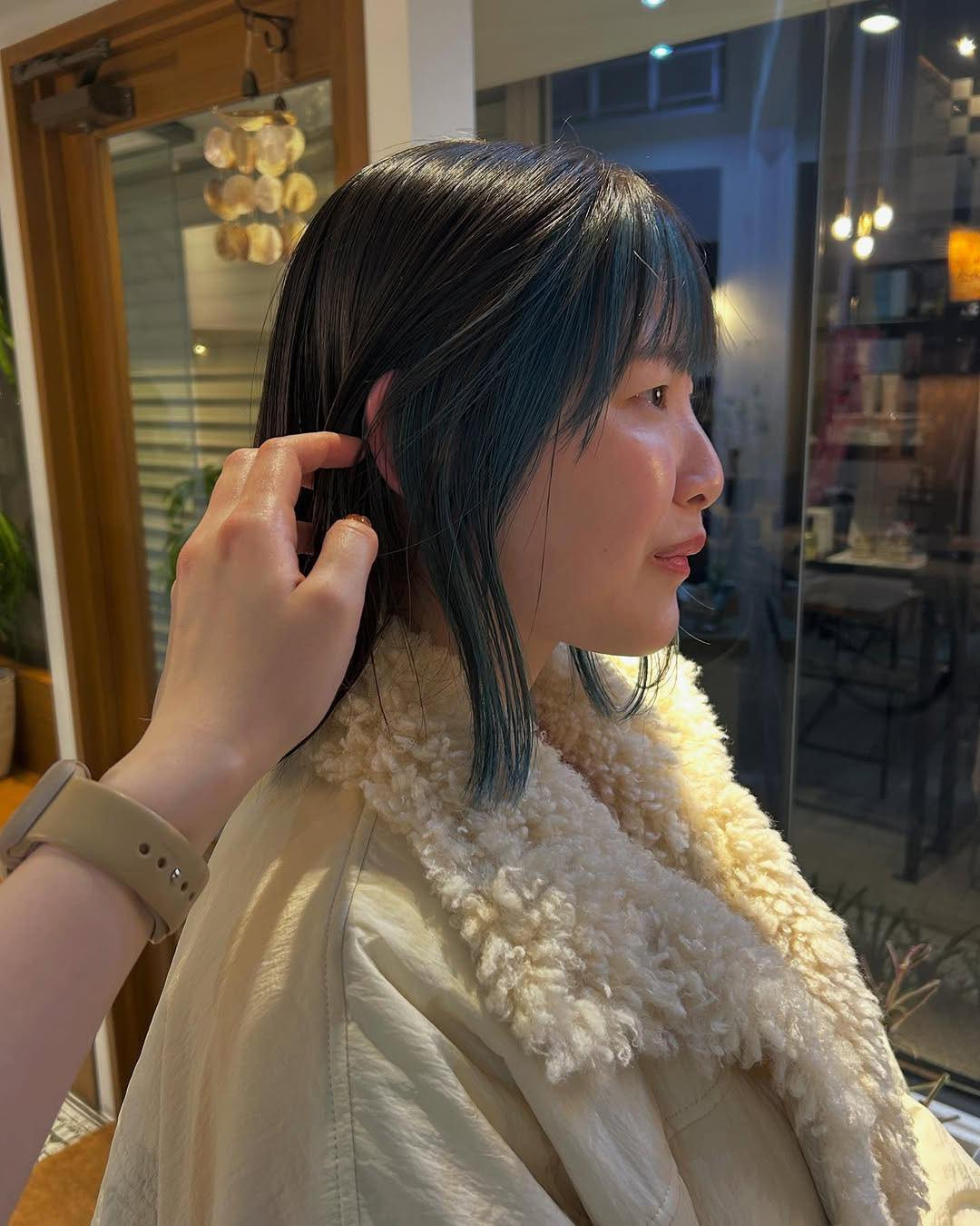 𝗶𝗻𝗻𝗲𝗿 𝗯𝗹𝘂𝗲🛼 フェイスブーミング × ブルー🐬 ちらっと見えるブルーカラー🦋 フェイスフレーミングなので前髪にも色が入ってて可愛い💙