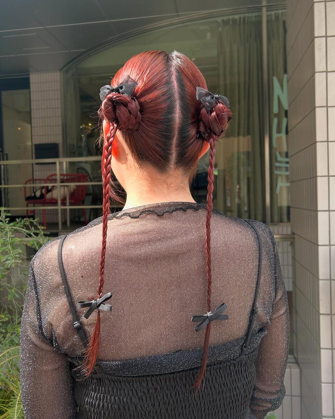 お客様の個性を活かしたツインテールスタイル🍒 お待ちいただいた黒のリボンがお洋服にもピッタリです🖤